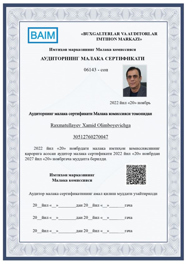 Мы специалисты по налогам, который помогаем клиентам минимизировать свои налоговые обязательства и увеличить свои сбережения. Предоставляют услуги Аудиторская организация "SMART CONTROL", Организация налоговых консультантов "MULTI TAX SERVICE", Бухгалтерская фирма ООО "HISOB-KITOB".
