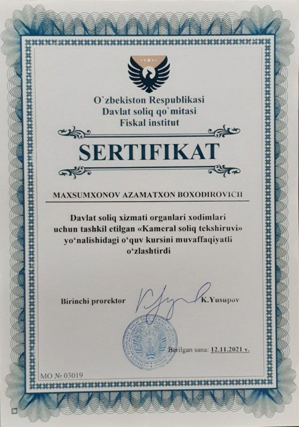 Махсумхонов Азаматхон Боходирович